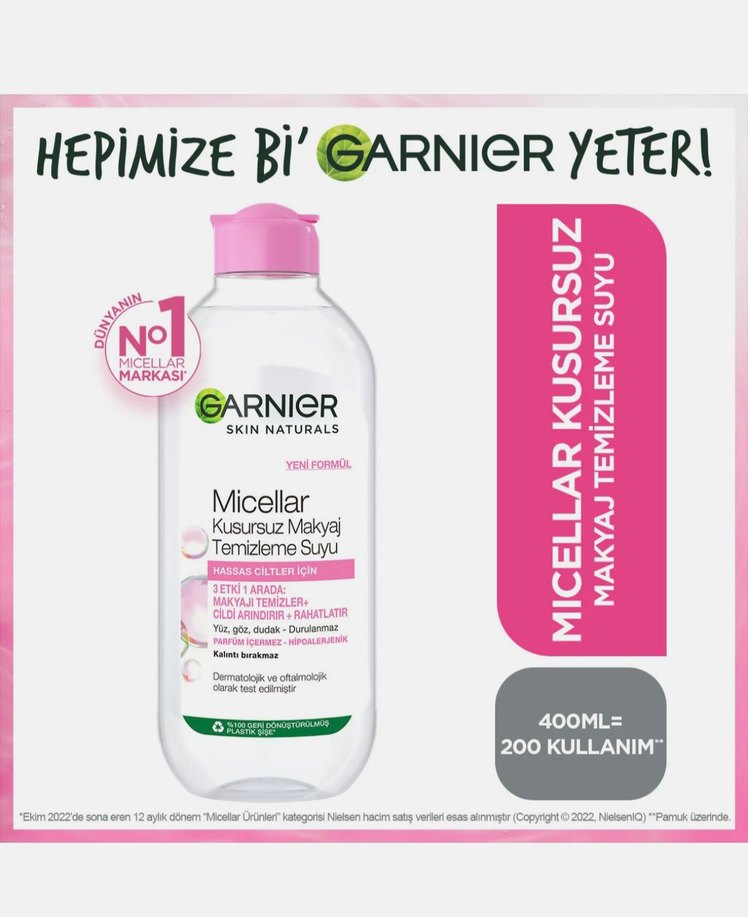 3Al 2 ödeden stok yaptım yeni ürün hepsi Garnier Micellar su, hassas ciltler için makyajı nazikçe temizler ve kusursuz şekilde arındırır. Cildi rahatlatır, ferahlatır ve nemlendirir. Dermatolojik olarak test edilmiştir. 400ml, 200 kullanımlık.