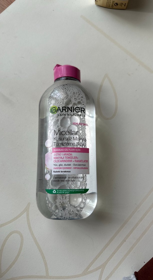 Garnier Micellar Temizleme Suyu, makyajı etkili şekilde temizler ve hassas cildi rahatlatır. Yüz, göz ve dudakları durulama gerektirmeden temizler, kalıntı bırakmaz. Hipoalerjenik ve parfümsüz.