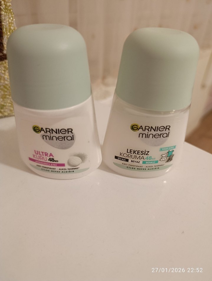 Garnier Mineral kadın roll-on deodorantlar, ultra saf ve leke bırakmayan formülleriyle 48 saate kadar koruma sağlar. Alkol içermez, nazik bakım sunar ve ferah tutar.