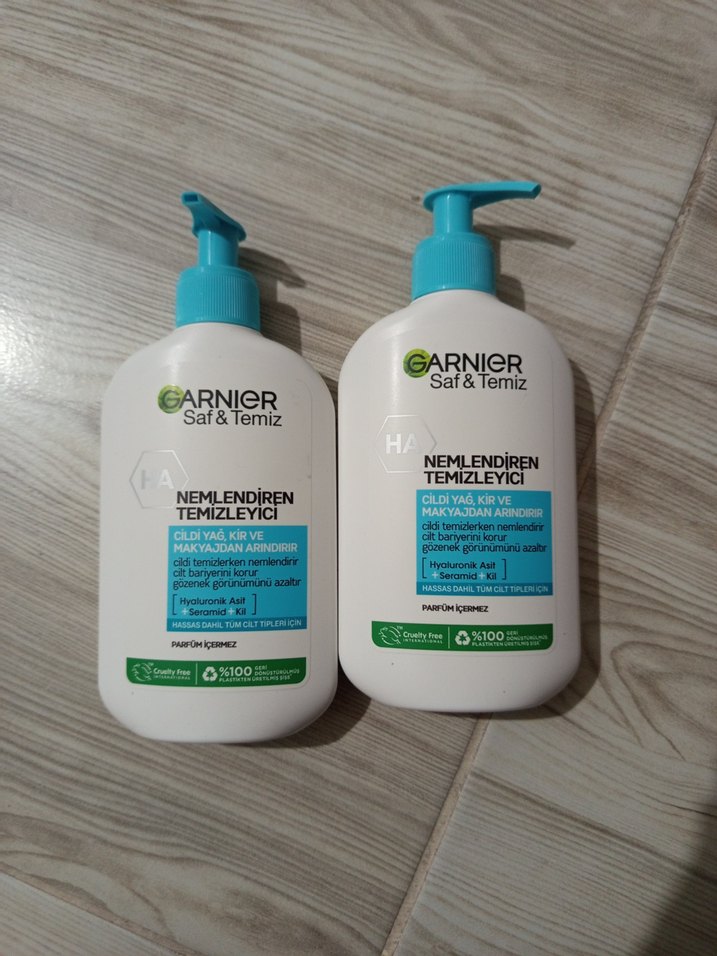 Garnier Saf & Temiz nemlendirici yüz temizleyici, cildi nazikçe kir, yağ ve makyajdan arındırırken nemlendirir. Hyaluronik asit içerir ve parfümsüzdür.