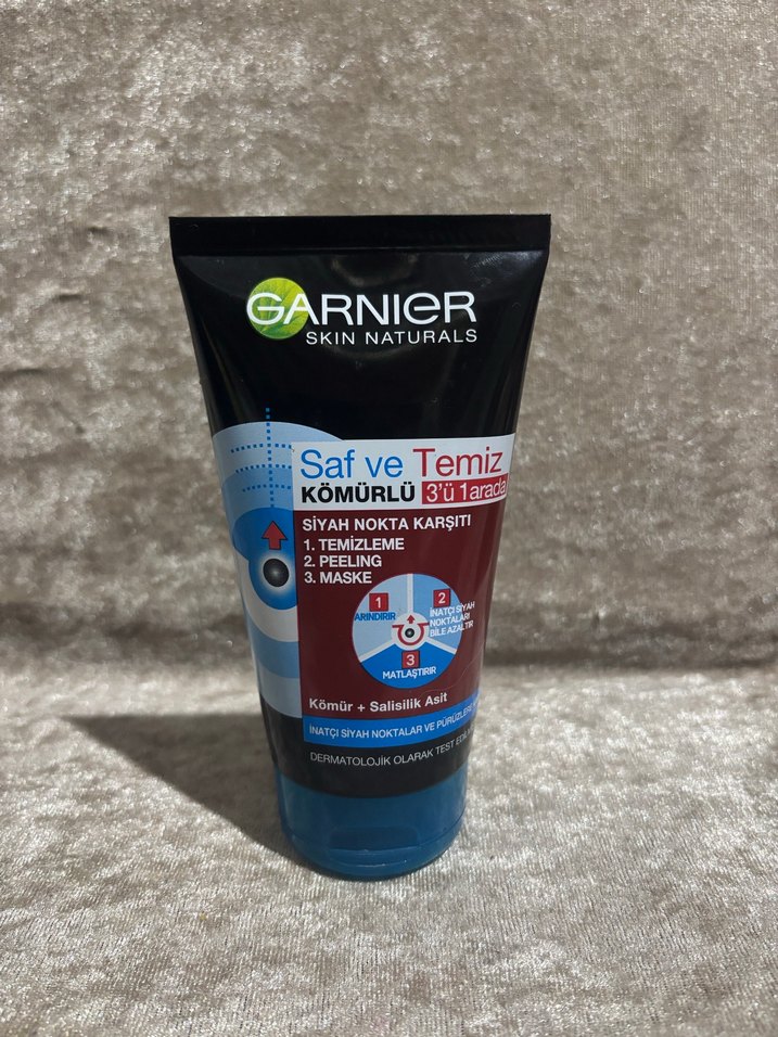 Garnier Skin Naturals kömür ve salisilik asit içeren, siyah noktalarla savaşan 3'ü 1 arada yüz temizleyici. Temizleme, peeling ve maske özelliği vardır. Bir kez az miktarda kullanıldı. Sıfır sayılır.
