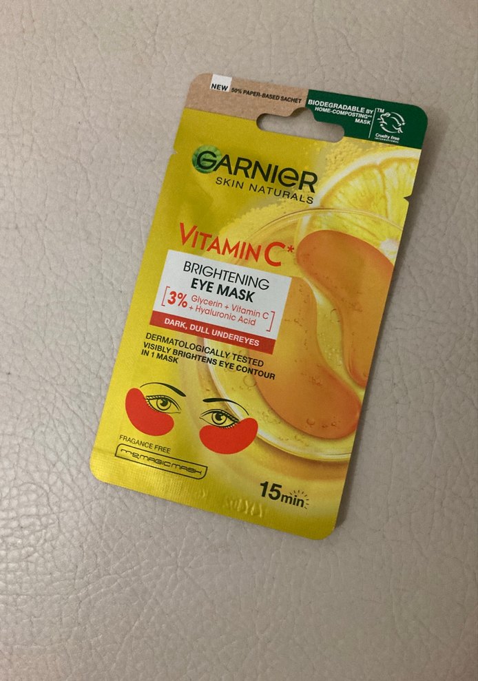 Garnier Skin Naturals Vitamin C Aydınlatıcı Göz Maskesi, koyu ve mat göz altlarını %3 gliserin, vitamin C ve hyaluronik asit ile 15 dakikada aydınlatır. Kokusu yoktur.