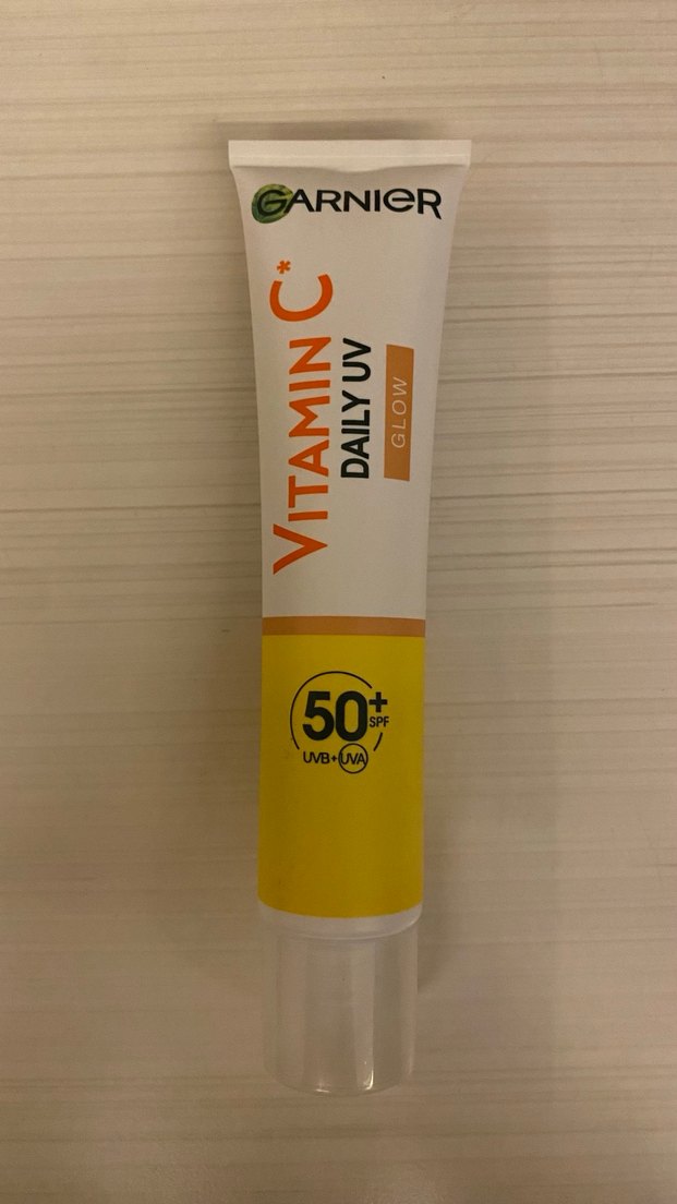 Garnier Vitamin C Daily UV Glow güneş kremi, SPF 50+ ile UVA ve UVB ışınlarına karşı yüksek koruma sağlar, vitamin C ile cilde parlaklık kazandırır. ☀️