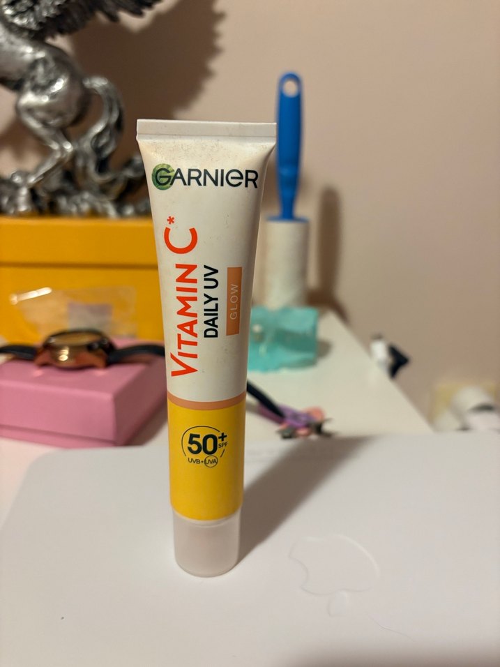 Garnier Vitamin C Daily UV Glow SPF 50+ yüksek koruma sağlar, günlük bakım sunar ve cilt tonunu aydınlatmaya yardımcı olur. ☀️ Rengi bana koyu geldiği için satıyorum. En açık renk, çok az kullanıldı