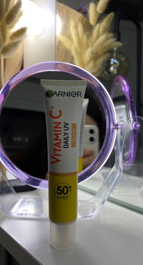 Garnier Vitamin C Daily UV krem, 50+ SPF koruma ve ışıltı etkisi sağlar, günlük güneş bakımı için uygundur.