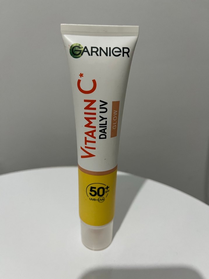 Garnier Vitamin C Daily UV Glow güneş kremi SPF 50+ koruma sağlar ve cildi UVA ile UVB ışınlarına karşı koruyarak ışıltılı bir görünüm kazandırır. Rengi tenime bi tık koyu geldiği için hiç kullanamadım.