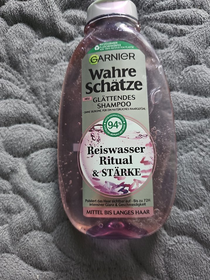 Garnier Wahre Schätze şampuan, pirinç suyu ritüeli ve güç formülü içerir. Orta uzunlukta saçlar için uygundur. Saçı 72 saate kadar parlatır ve düzleştirir. %94 doğal içerik.