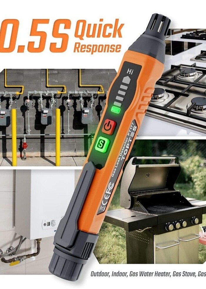 Gaz Dedektörü, Sesli ve Görsel Uyarım Metan gibi Yanıcı Gaz Kaçak Kaynaklarını Bulmak için Taşınabilir Gaz Sniffer Yanıcı Gaz Kaçak Dedektörü: PT177, gaz aletleri olan her evin LPG, metan, etan, propan, bütan, doğal gaz, kömür gazı vb. yanıcı gaz sızıntısını hızlı tespit etmesine yardımcı olan araçtır. Görsel ve Sesli Alarmlar: PT177 gaz dedektörü, açıldıktan sonra 30 saniyelik bir otomatik kalibrasyon gerektirir, gazı algılayabilir ve 0,5 ila 3 saniye içinde bir alarmı tetikleyebilir. Gaz konsantrasyonu arttıkça beş kırmızı LED ve 75 dB sesli alarm yoğunlaşır Cep boyutu, gömlek cebinizde taşımanıza izin veren bir cep klipsi ile.