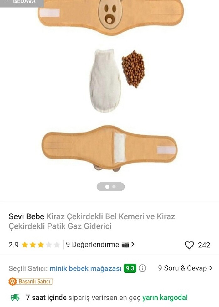 gaz giderici Kiraz çekirdekli bebek bel bandı bebeklerin gaz sancılarını yetiştirmek için ideal bir üründür normal fırında veya mikrodalgada ısıtıldıktan sonra bebeğin beline takılarak kullanılır Kiraz çekirdekleri ısıyı uzun süre muhafaza eder ve yavaşça dışarı vererek bebeğinizi rahatlatmaya yardımcı olur. ürün neredeyse sıfır ayarındadır kutulu bir şekilde gönderim sağlanacaktır Tek kelimeyle mükemmel diyebilirim Eğer gaz sorunu olan bir bebeğiniz varsa kullanımı da çok kolay ben genelde mikrodalgada ısıtarak yaptım daha pratik oldu ısıttıktan sonra bebeğinizin beline bağlamadan önce ısıyı kendi kol İçinizde ölçerseniz çok daha iyi olur