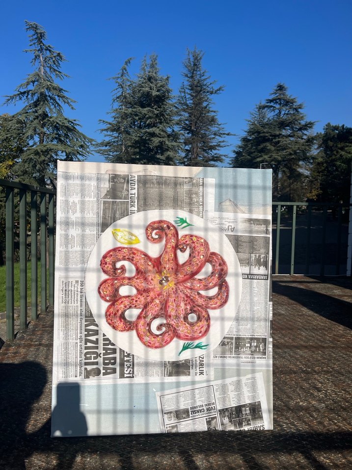 Gazete Temalı Ahtapot Tasarımlı tablo