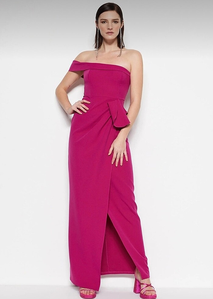 Trendyolmilla Mürdüm dokuma volanlı uzun gece abiye Hiç kullanılmadı etiketi üstünde iade zamanı geçtiği iade yapamadım