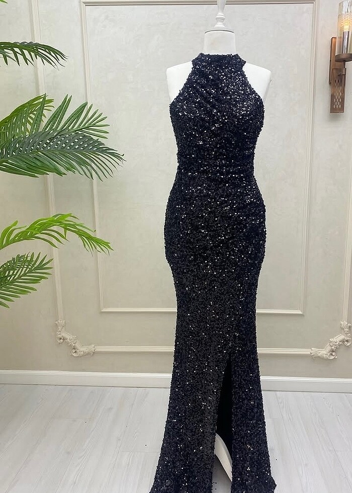 GECE ABİYESİ SİYAH PALETLİ ELBİSE
