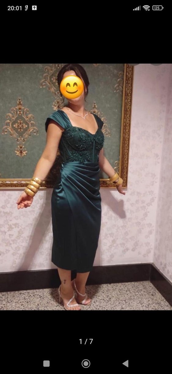 saten gece elbisesi 1 kere giyilmiş tertemizdir