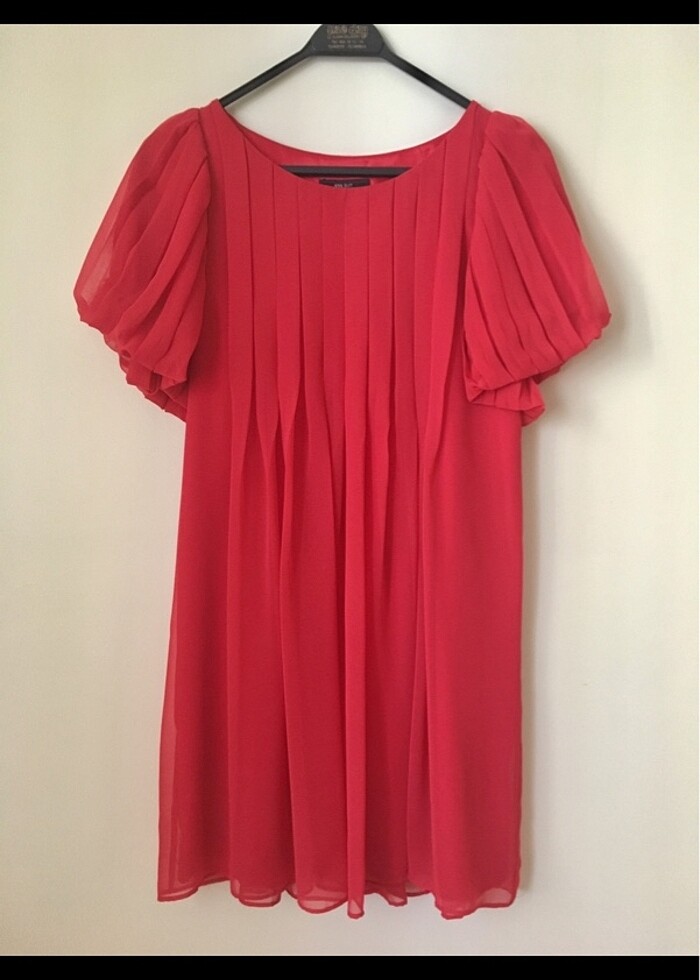 Mango Gece Elbisesi Tam rengi Nar çiçeği Modeli sebebiyle her vücut tipine uygun Bedeni M ama 36-42 beden arası bedenlere de uyabilir Yakası biraz kayık sıfır yaka Enseden eteğe kadar olan boyu 82 cm #mango #mngsuit #mangoelbise #kirmizi #narcicegi #geceelbisesi #pileli #piliseli