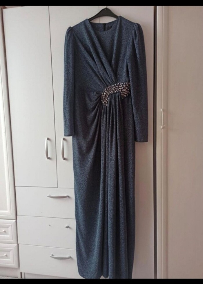 esnek kumastir 42 bedendir.esnek kumas oldugu icin 44 bedende giyebilir . sadece bir aksam giyildi kumasi simli isiklarin altinda gercekten cok şık duran bir elbisedir orjinal boydur herhangi bir terzi islemi olmamistir