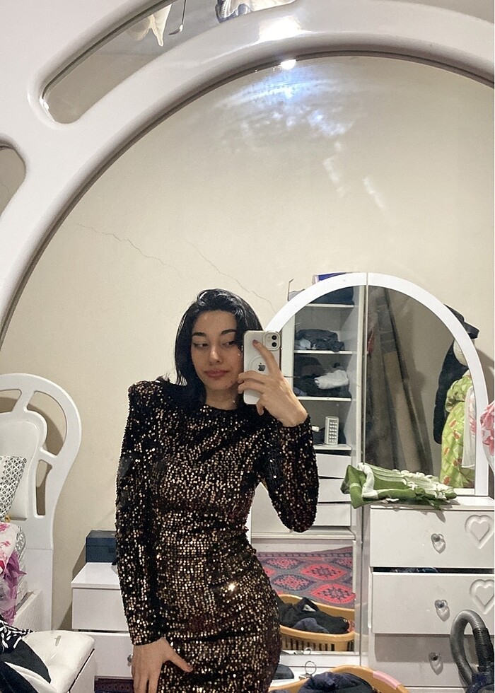 Pul payet parıltılı ışıl ışıl uzun elbise tam kalıptır esneme payı yoktur