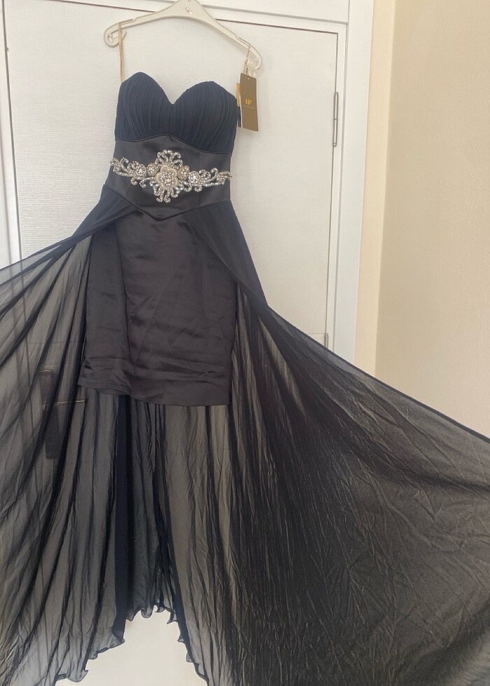 Defile için dikilmiş özel elbise hiç giyilmemiş bedenleri dar