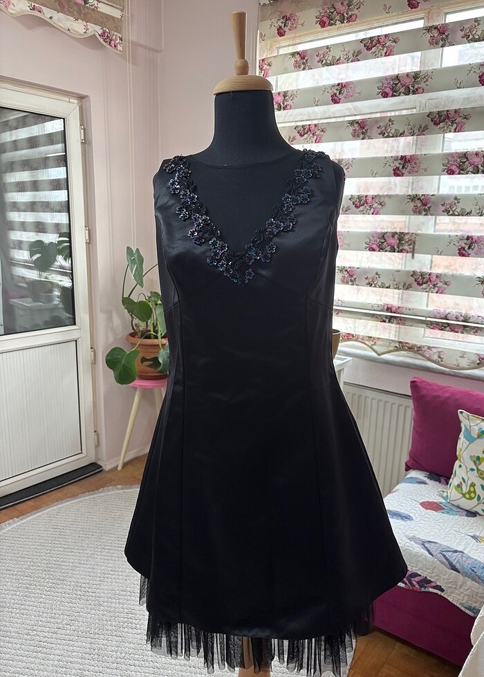 Çok şık ve zarif bir elbise hiç bir deformesi yoktur. Bedeni maalesef olmadığı için satıyorum. 40 beden ama 38 bedene de rahatlıkla olur