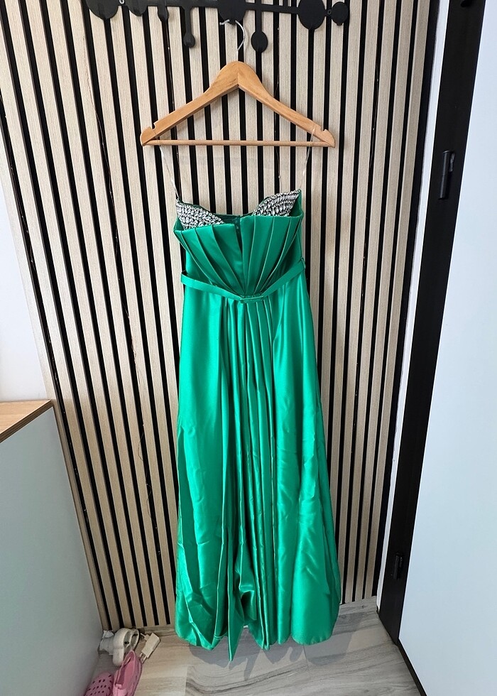 Kardeşimin düğününde giymiştim.Bir daha giyemeyeceğim için satıyorum.Spor bir abiye yandan cepli straplez önü sırf taş işleme.Rengi çimen yeşili fıstık yeşili arası tatlı bir renk #abiye #elbise Temiz sadece ütü gerekiyor.3800 tl ye almıstım.