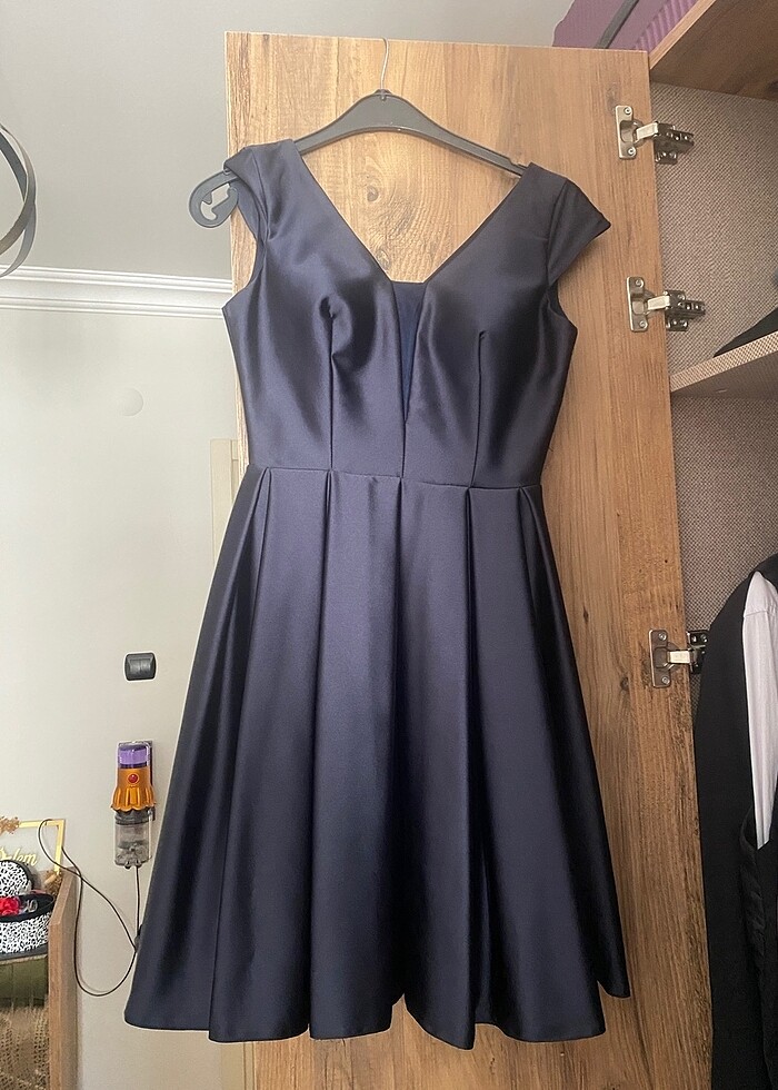 Saten kumaşından parlak lacivert renk, hiçbir kusuru yoktur.