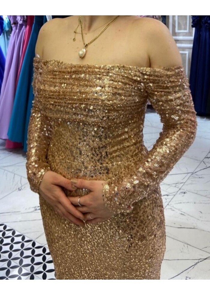 Arkası fermuarlı sadece bir kez giyildi . 38 bedendir. Pullu payetlidir .