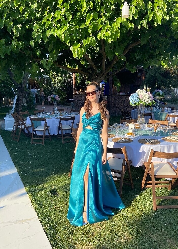 Bir kere giyildi alindigi gibi duruyor . Gonderilmeden once kurutemizleme yaptiracagim . 162 boyunda 50 kiloda giydim etiket bedeni yok 34 36 bedene olur . Petrol mavisi renginde