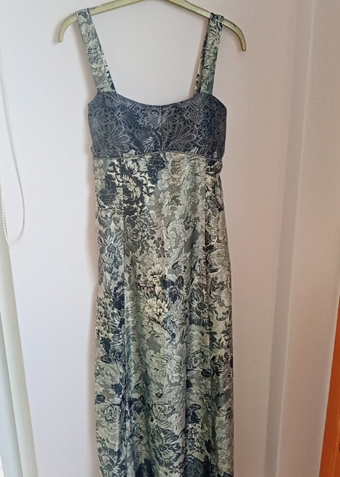 Gece elbisesi özel tasarım hiç kullanılmadı..S BEDENEDE UYGUN,M BEDENEDE, uzunluk 134, göğüs 35cm,arka üst kısım likrali