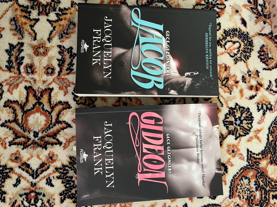 Jacquelyn Frank'ın Gece Gezginleri serisinden "Jacob" ve "Gideon" adlı iki roman. Karanlık ve sürükleyici hikayeler içerir.