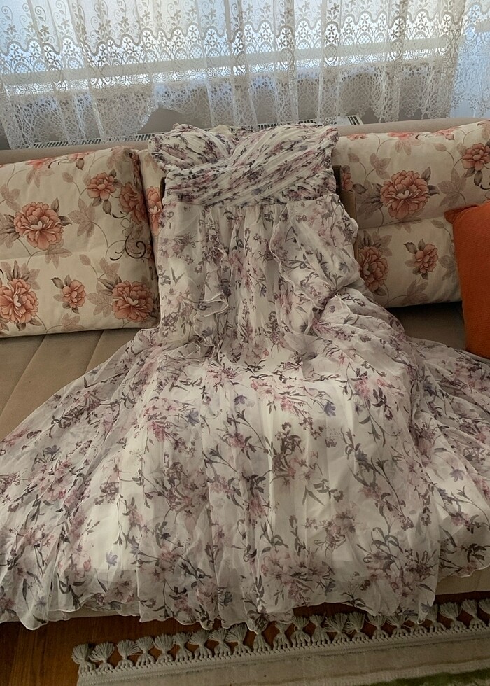 Kızımın düğününe aldım sadece İkisaray giydim sadece etiketi eksik çok şık iki tarafı yırtmaç arka tarafı dekolte şifon geri iade kabul etmiyorum ayakkabısında aynı siteden satışa koymuştum
