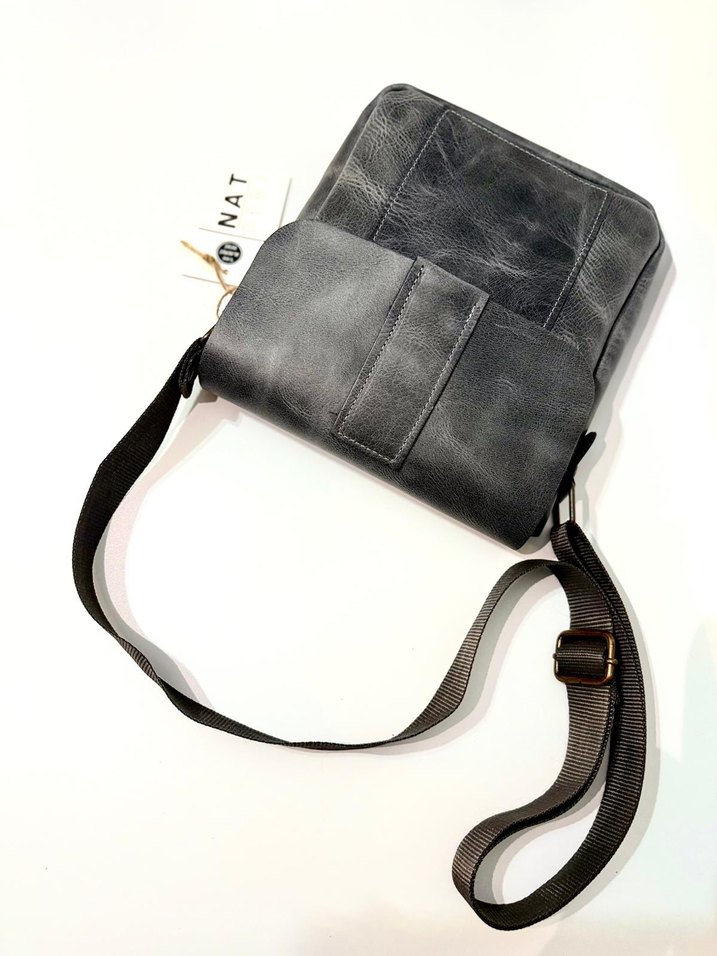 Ayarlanabilir kayışlı, gece mavisi unisex omuz çantası. Desensiz yüzeyi ve ayarlanabilir kayışıyla sokak stiline uygun bir aksesuar.