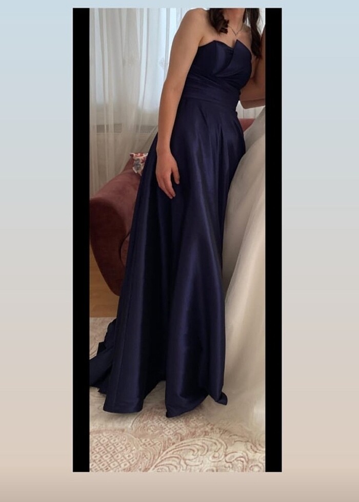 Gece mavisi ince tafta parlak kumaş abiye