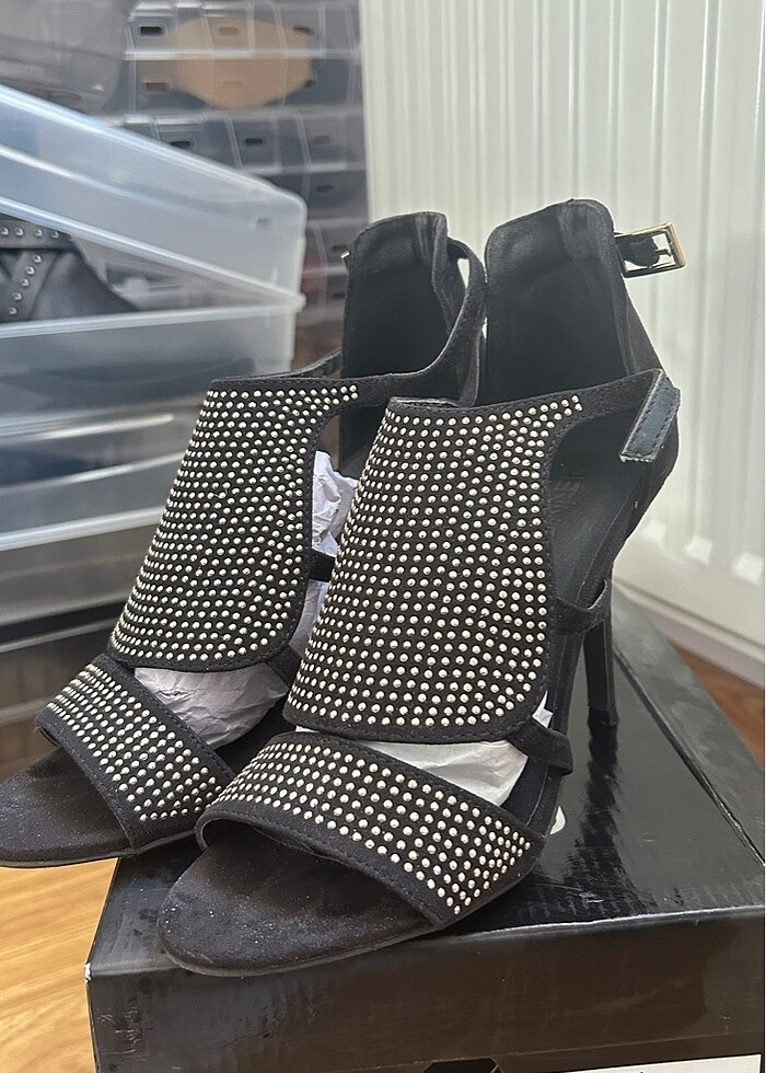 Bir kez giyilmiştir. Temizdir. Kısa topukludur. Hiçbir deformasyon yoktur.