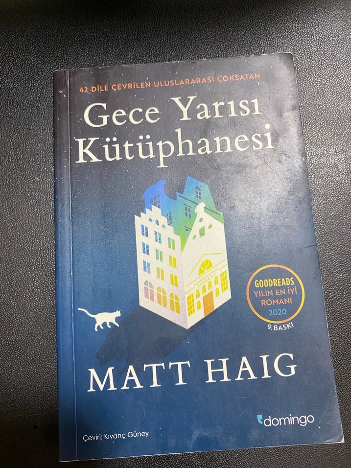 Matt Haig'in romanı 'Gece Yarısı Kütüphanesi', hayat seçimleri ve pişmanlıkları fantastik bir kütüphane ortamında anlatıyor. Türkçe çevirisi, bina ve kedi illüstrasyonlu kapağa sahip. Goodreads 2020'nin en iyi romanı seçildi.