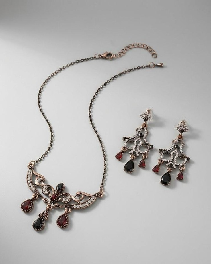 Bazı mücevherler sadece parlamaz, aynı zamanda bir hikaye fısıldar. Bu set, 1940’ların buğulu stüdyo portrelerinden, kristal avizelerin altında edilen danslardan ve yazılmamış aşk mektuplarından ilham alıyor. Bronzun asil ağırlığı, derin kırmızı taşların gizemiyle buluşarak geçmişin zarafetini günümüze taşıyor. Gerdanınızda taşıdığınız sadece bir kolye değil; bir dönemin ruhu, bir kadının zarafet imzası. #LunabelleRose #vintagejewelry #vintagetakı #vintage #takıseti #vintagetakıseti #OtantikTakı #OtantikTakıseti