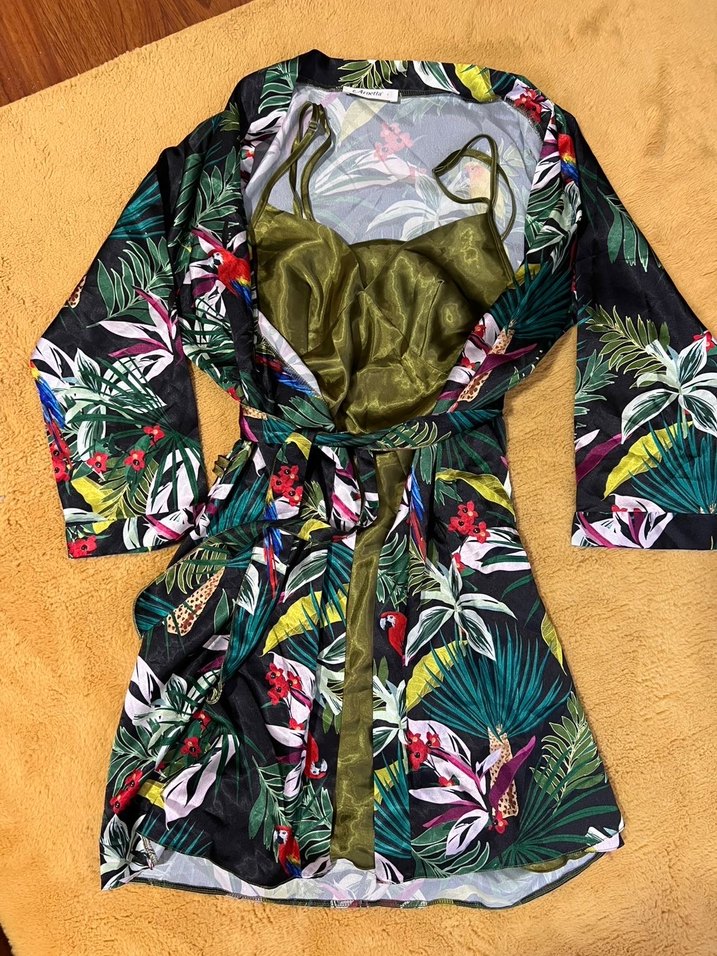 S beden. Hiç kullanmadım. İncecik yumuşak saten kumaşı var. Rengi gün ışında da çekmeye çabaladım ama tam rengi zeytinyağı yeşili.