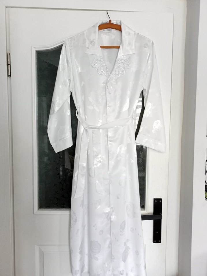Saten yakası güpür detaylı sabahlık takımı etiketi yok hiç kullanılmadı tam takımdır