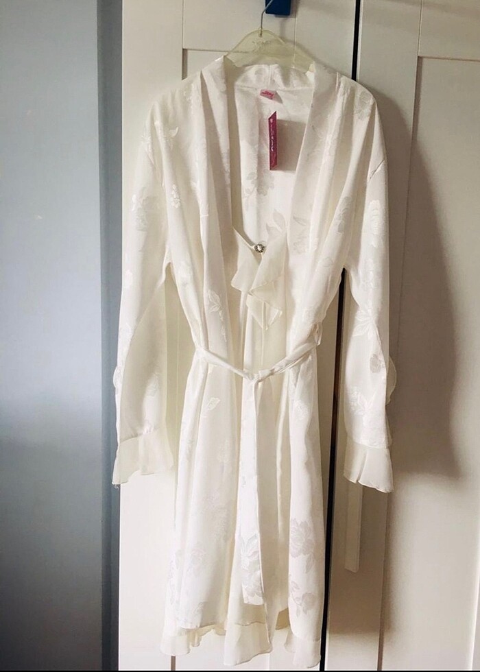 Yeni etiketli gecelik sabahlık takım Kol,yaka ve etek uçları tül detaylı