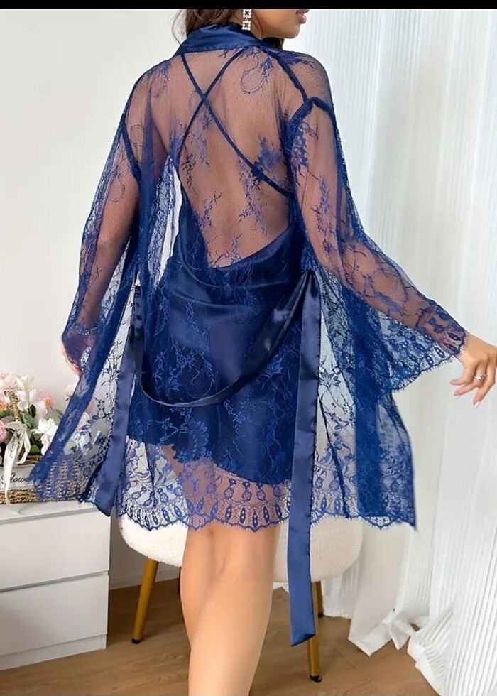 Saten dantelli ikisi gecelik sabahlik takim