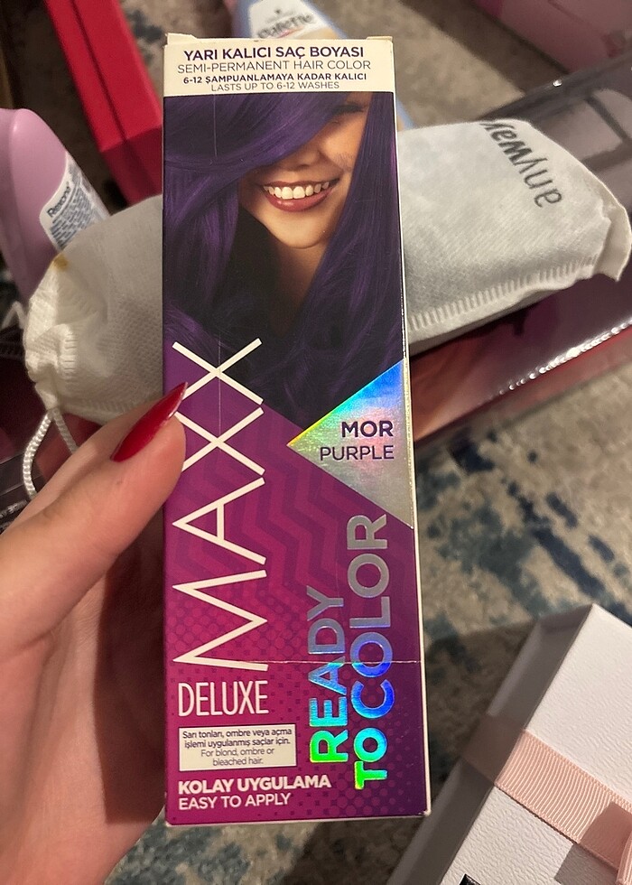 İçinde 1 tüp tam mor boya bir de çeyrek vardır
