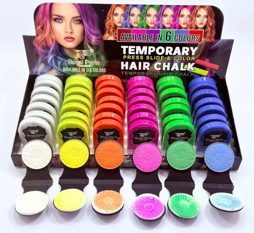 Altı farklı canlı renkte geçici saç tebeşiri. Bas-çek mekanizmasıyla kolay uygulanır, hızlı renk değişimi sağlar.
