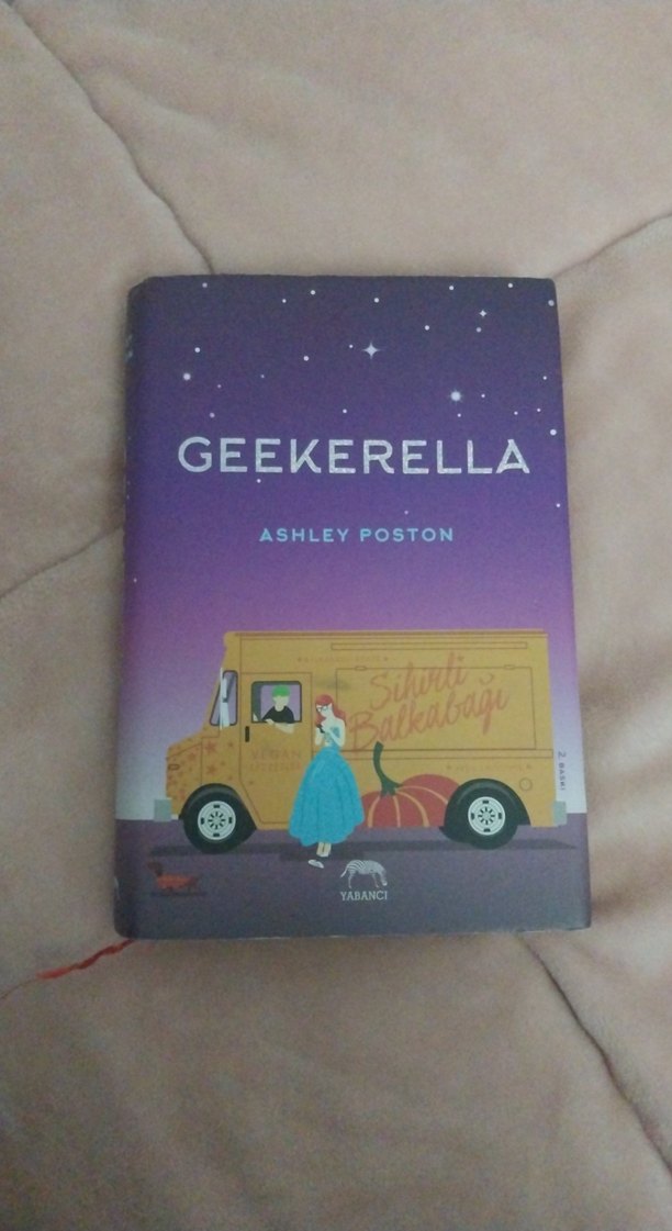 Ashley Poston'un Geekerella adlı romanı, yıldızlı gökyüzü altında mavi elbiseli bir karakter ve yiyecek kamyonu illüstrasyonuna sahip.
