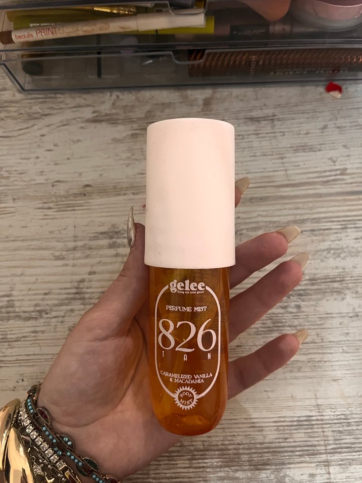 Gelee 826 kadın parfüm mist, karamel, vanilya ve makadamya notalarına sahip, kompakt şişede. Ürün hiç kullanılmadı pr hediyesidir