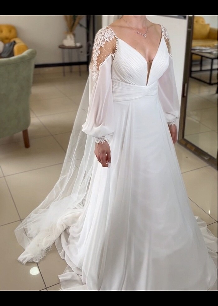 Bir kez kullanıldı tarlatanı mevcut fakat fotoğraflarda kullanılmamış hali var çok zarif arkası dikildi v şeklinde yapıldı
