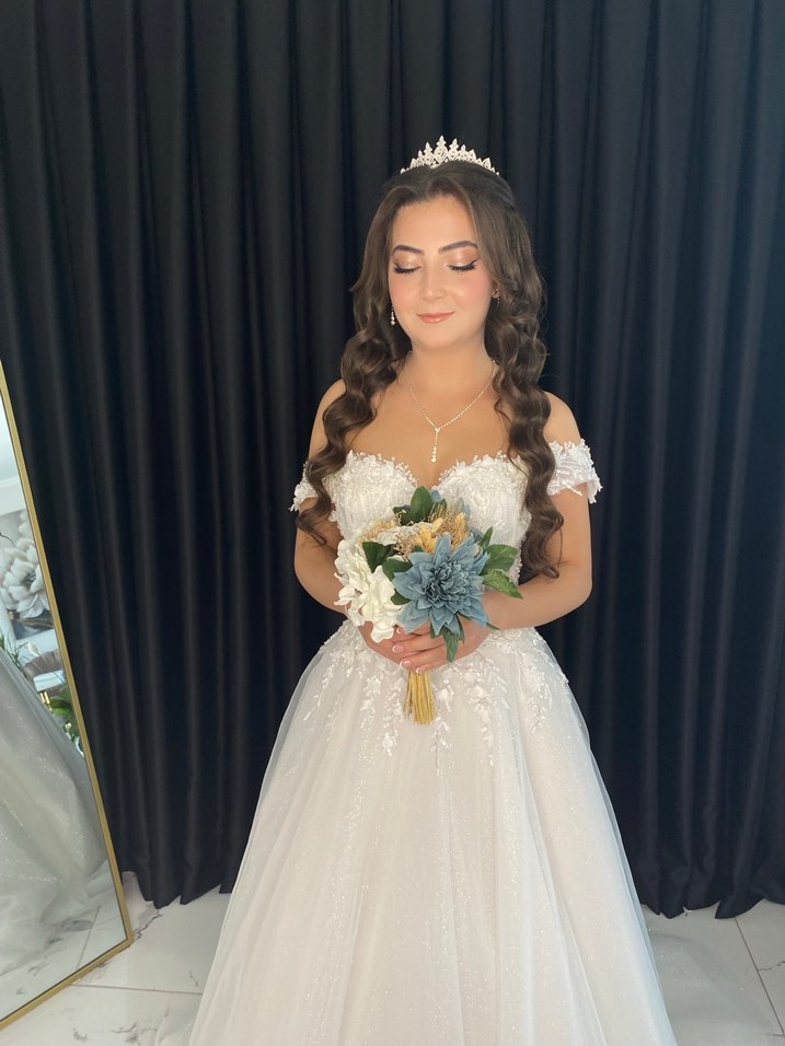 1 kere giyildi 0 aldım üzerime göre dikildi ama arkası bağlamalı bedene göre de ayarlanabilir 1.60 boy 51 52 kiloyken giyili sorunsuzdur detaylı ilgilenen kişiye resim atılır Çiçek duvak taç tarlatan hepsi set olarak gönderilecektir