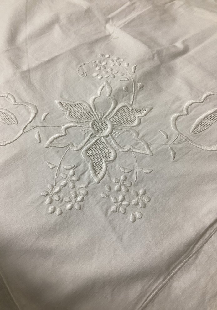Geleneksel işlemeli çiçek desenlerine sahip beyaz kırlent, evinize klasik bir dokunuş katar. 60*60 2 adet.nokta şeklinde bır ıkı dolap lekesi mevcut