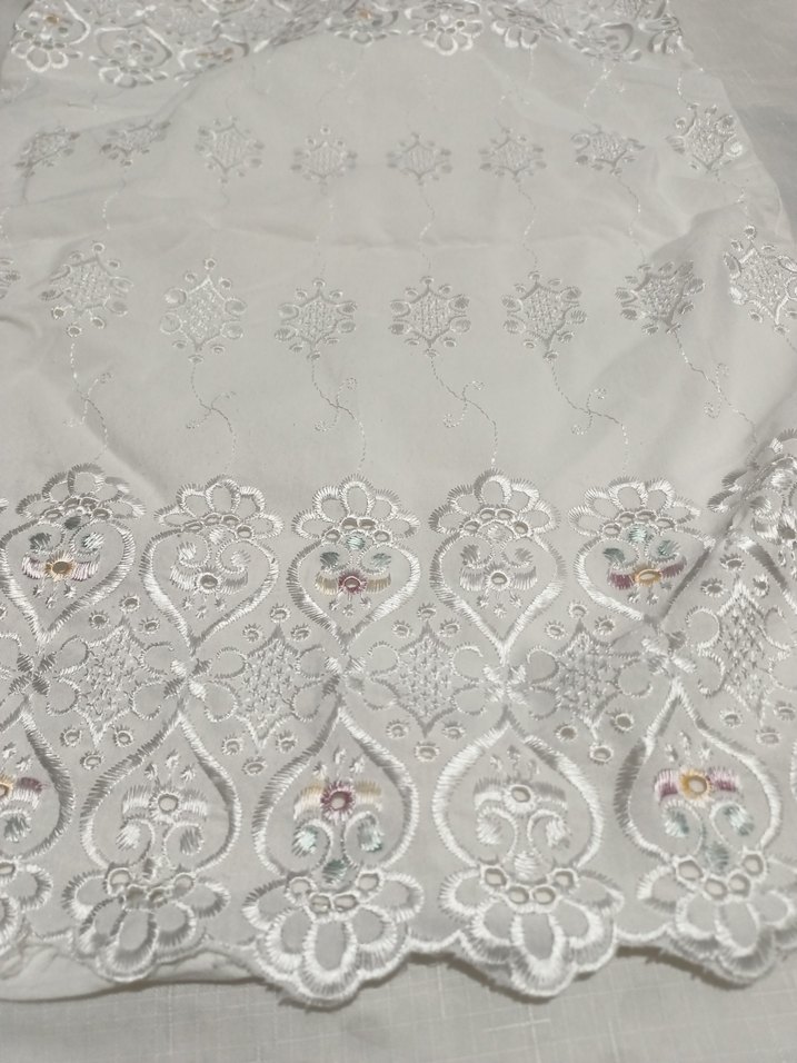 Geleneksel tarzda, beyaz kumaş üzerine ince gri işlemeli çiçek desenleri bulunan güpürlü yastık kılıfı