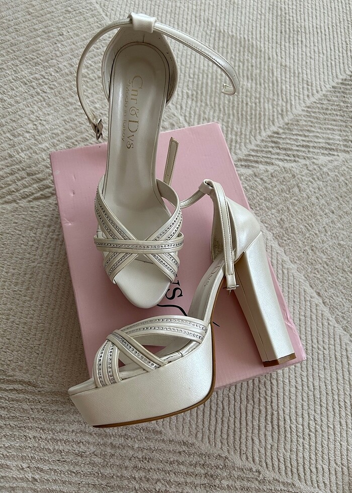 Düğünümde kullandım sadece 38 numara platform hiç bir sorunu yok taşlarının hepsi yerinde 13 cm topuk boyu sadece sağ ayakkabı alt kısmına isim yazıldı onları temizlemeye çalıştım ama malesef anca bu kadar çıktı. Kendi kutusuyla gönderim yapıcam