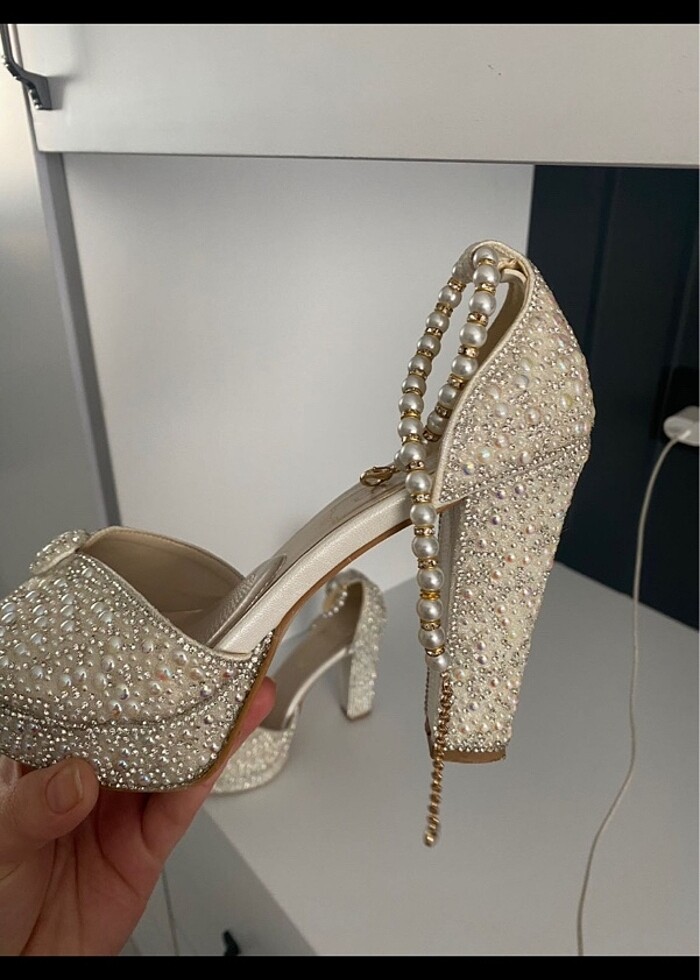 Düğünümde giydim 3 saat muhteşem rahaaaat kendim 2500₺ aldım , fuuul incili dolgu topuk konforlu normalde 37 giyiyorum içine jel taban koydular 38 aldım