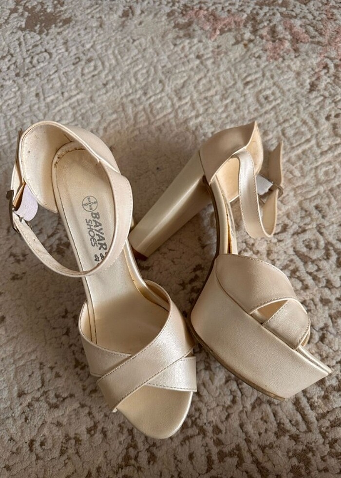 Ürünü bir kez düğünümde giydim.temiz kullanılmıştır.Rengi ışıktan dolayı sarı gibi çıkmıştır beyazdır. aynı satıcı fiyatı 1700 dür. Çok rahat bir ayakkabıdır evlenecek olanlar veya ayağı rahat etmek isteyenlere mutlaka almalı Topuk boyu 10 cm