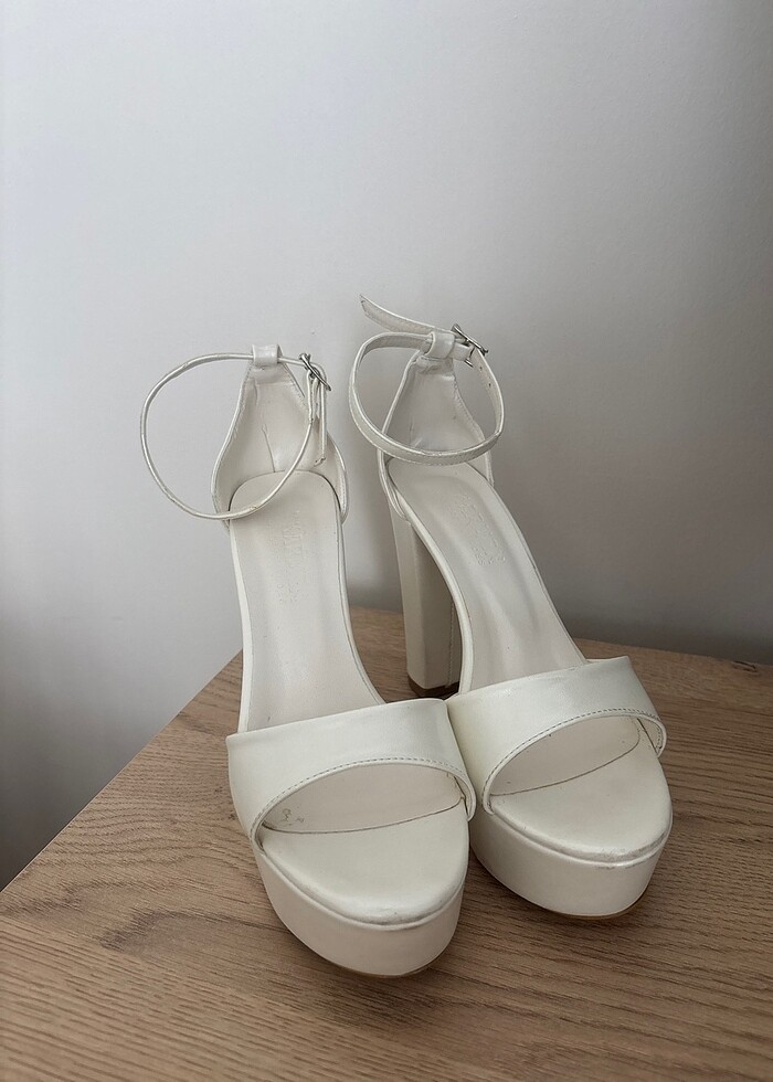 Düğünümde giydim temizdir. Kırık beyazdır. 37 numara, platformlu ve rahattır. Yaklaşık 10-11 cm . 1000 liraya almıştım elimden çıksın diye yarı fiyata satıyorum. Nikah elbisesiyle beraber alana indirim yaparım.